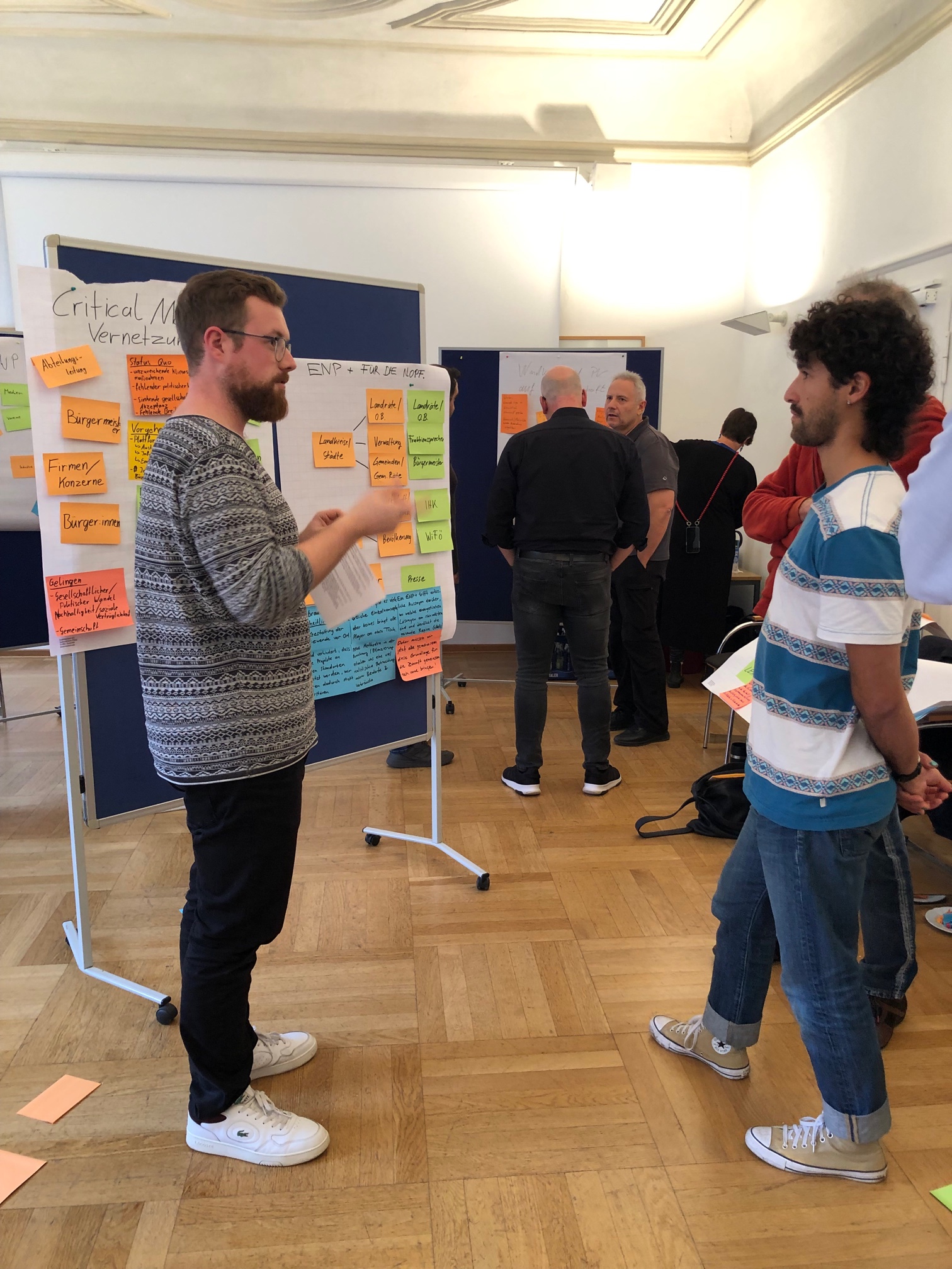 Mehr als ein Dutzend kommunaler Klimaschutzbeauftragter aus Landkreisen, Städten und Gemeinden nahm an dem Workshop teil. Sie lernten, wie man Gespräche gezielt führt, unterschiedliche Akteure besser einbindet und mit Storytelling Menschen für den Klimaschutz gewinnen kann. Im Mittelpunkt stand die Frage, wie Kommunikation als entscheidender Bestandteil von Veränderungsprozessen genutzt werden kann.