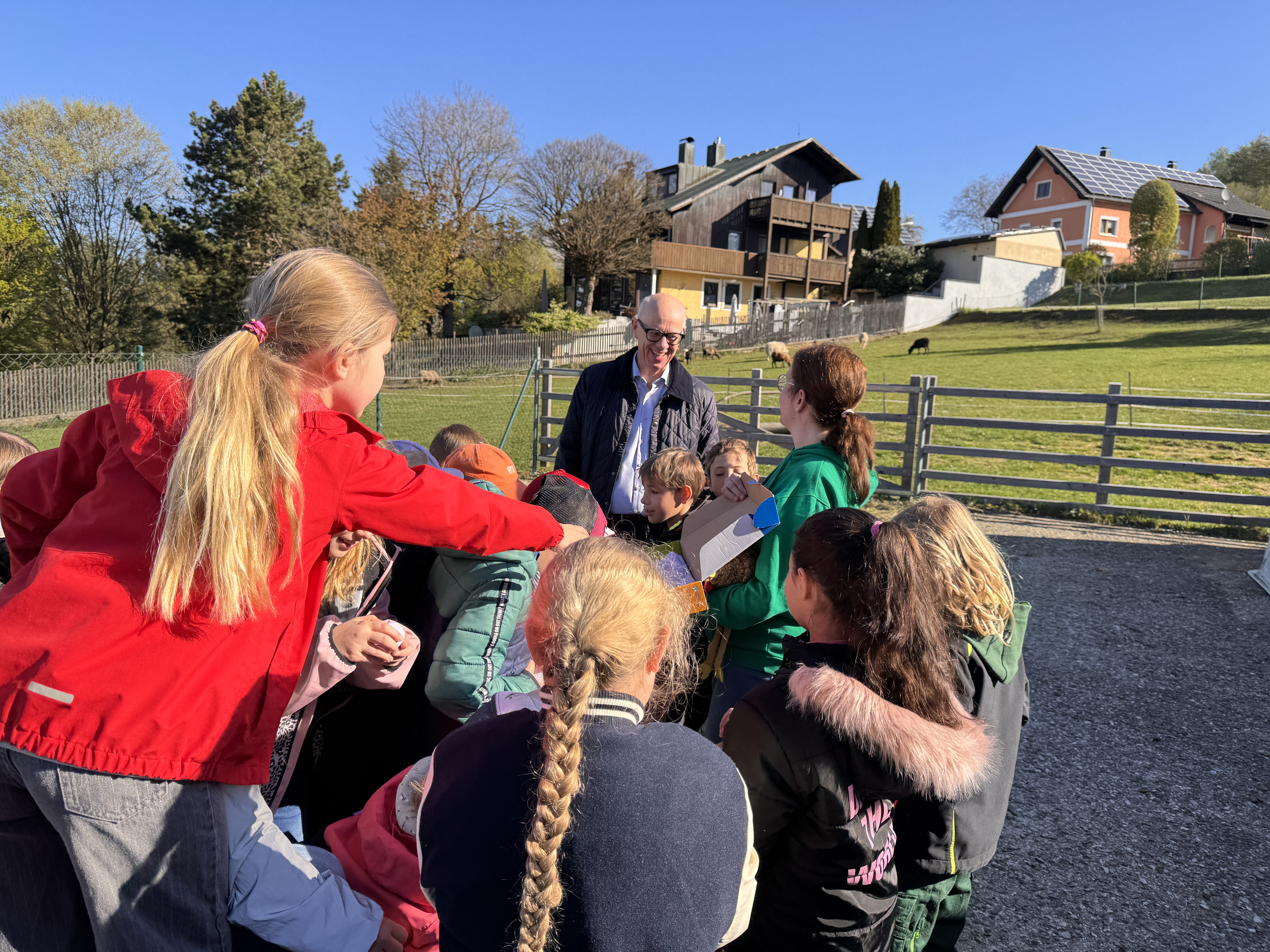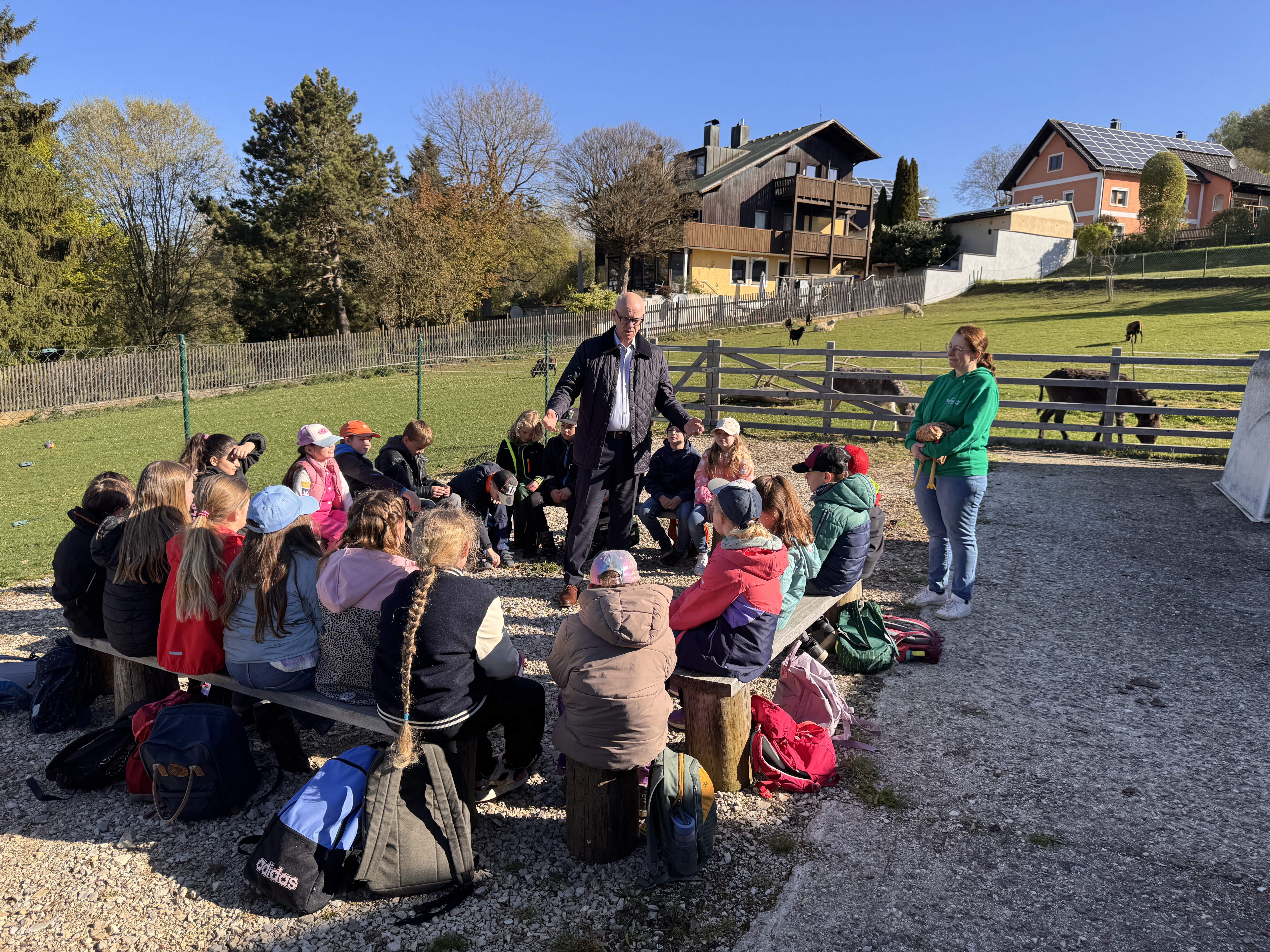 Unter dem Motto „Frühling.Erlebnis.Bauernhof“ erlebten die Schülerinnen und Schüler, wie und wo Lebensmittel ganz natürlich entstehen. Statt Tafel und Schulheft standen Stall, Wiese und Hof im Mittelpunkt. Die Kinder erfuhren anschaulich alles „Rund ums Ei – Vom Huhn zum Ei“.