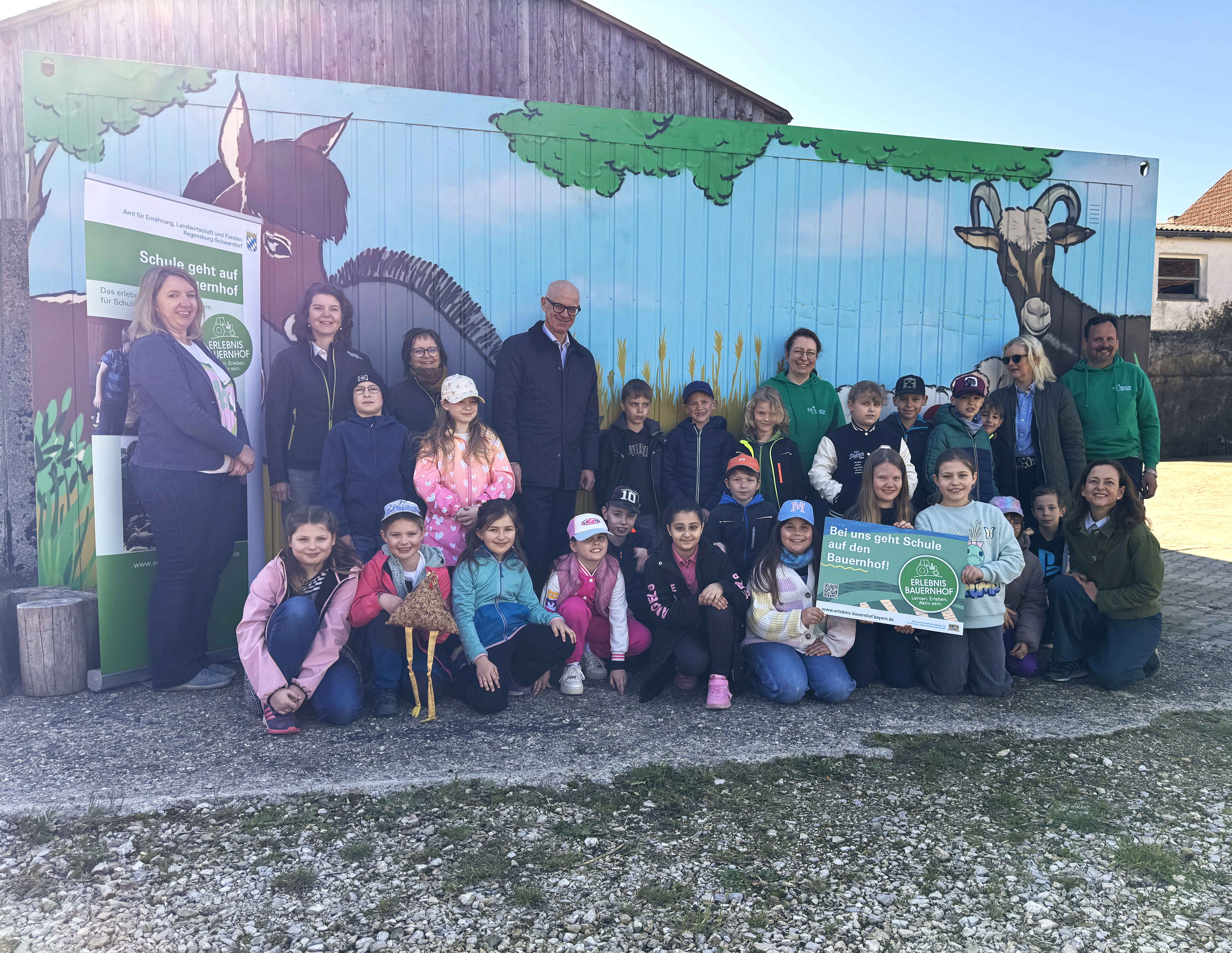 Die Aktion „Erlebnis Bauernhof“ wird vom Bayerischen Staatsministerium für Ernährung, Landwirtschaft, Forsten und Tourismus getragen. Sie ermöglicht Schülerinnen und Schülern einen kostenfreien Lernerlebnis-Tag auf einem Bauernhof. Ziel des Programms ist es, Wertschätzung für heimische Lebensmittel zu fördern, Einblicke in landwirtschaftliche Betriebe zu geben und Alltagskompetenzen zu stärken. Seit Beginn des Programms haben bayernweit bereits über 680.000 Schulkinder in mehr als 34.000 Klassen teilgenommen; aktuell sind 903 Betriebe in Bayern für das Programm qualifiziert und zugelassen.
