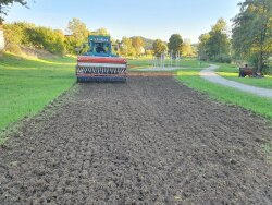 Angesäte Fläche im Freizeitgelände Quadfeldmühle im Sommer 2022